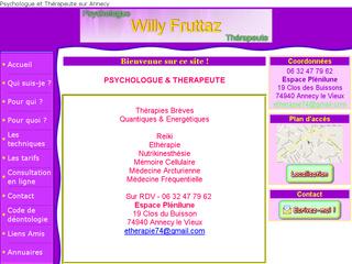 Willy Fruttaz est psychologue et therapeute sur Annecy (74) en Haute-Savoie. il pratique des soins quantique, holistique et énergétique. Willy Fruttaz prend en compte le physique, le mental, l'émotionnel et le spirituel de chaque être.
